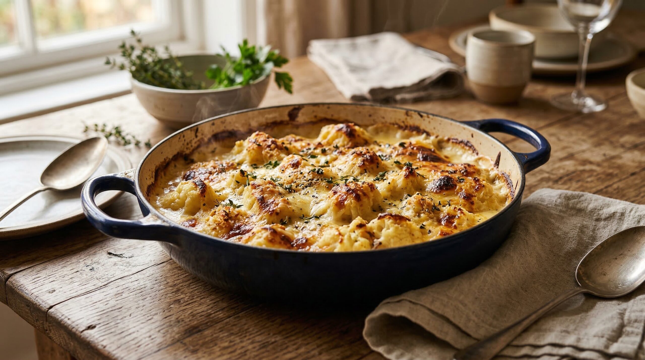 Garlic-Roasted Cauliflower in Cheese Sauce