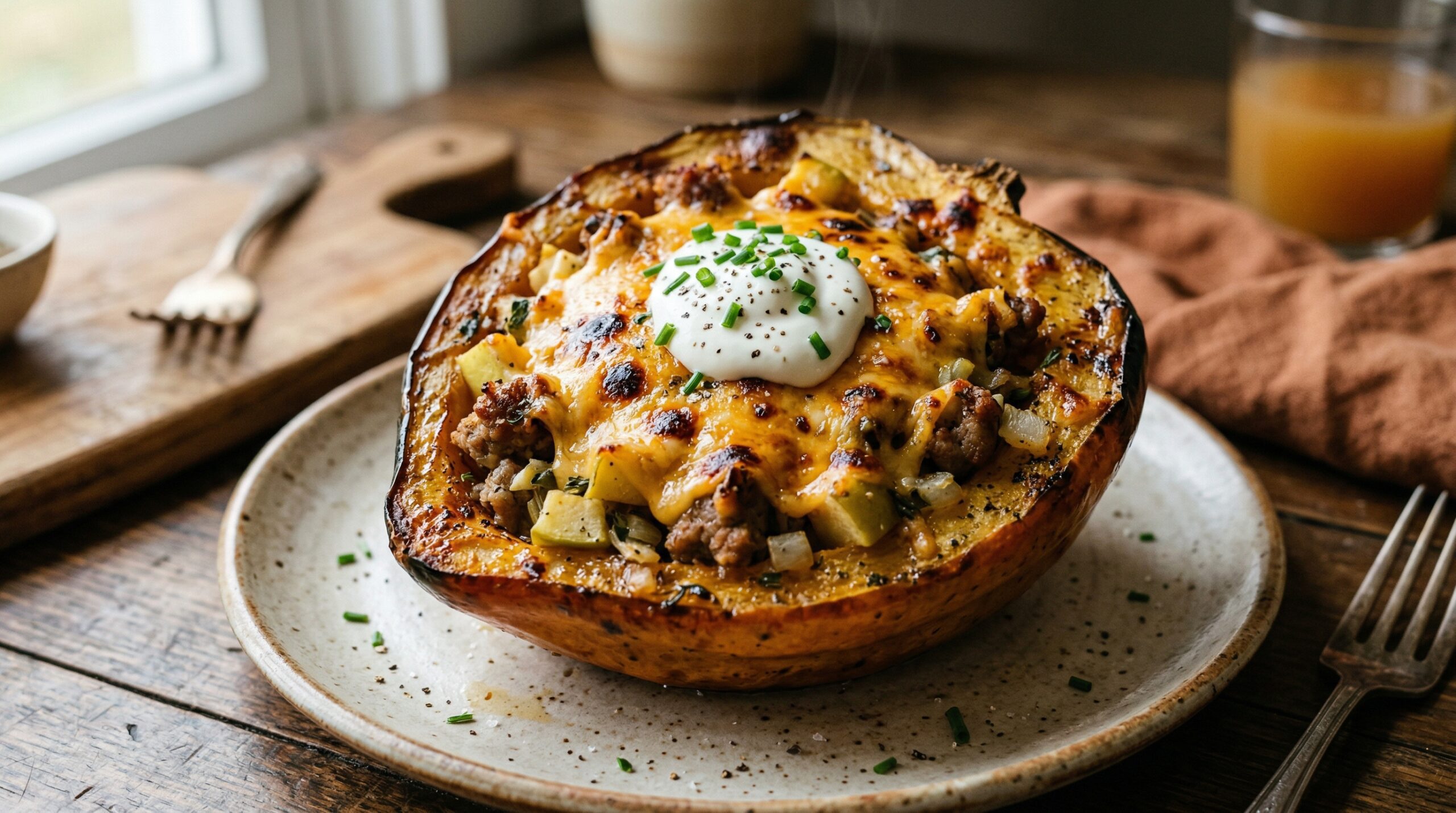 Apple, Sausage, and Cheddar Stuffed Acorn Squash