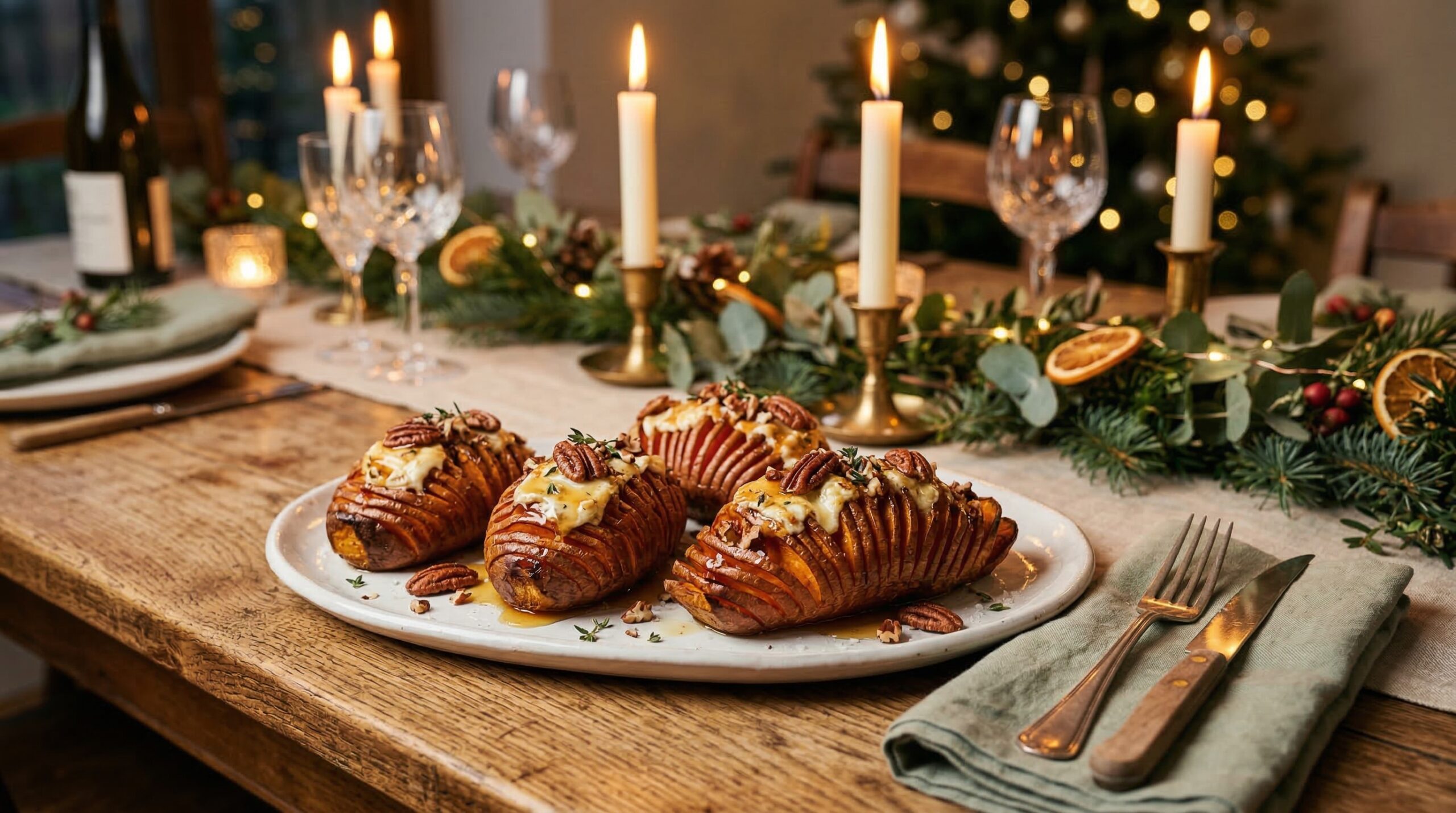 Honey & Goat Cheese Hasselback Sweet Potatoes