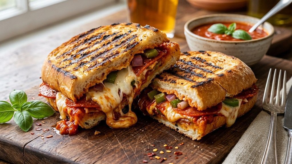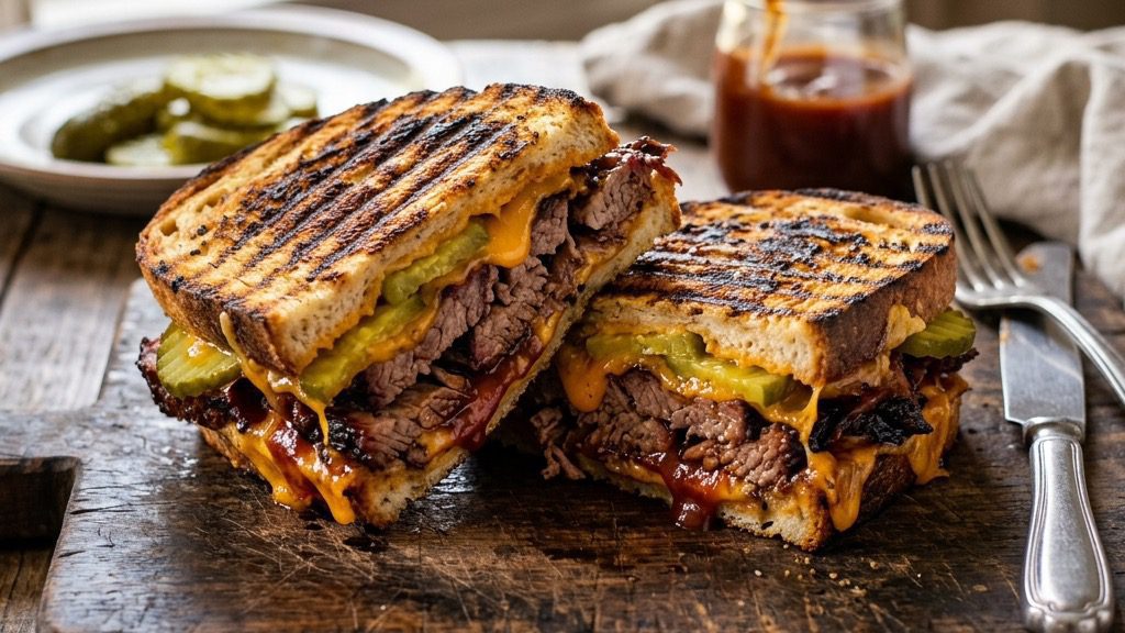 Smoked Brisket and Cheddar Panini on Garlic Toast