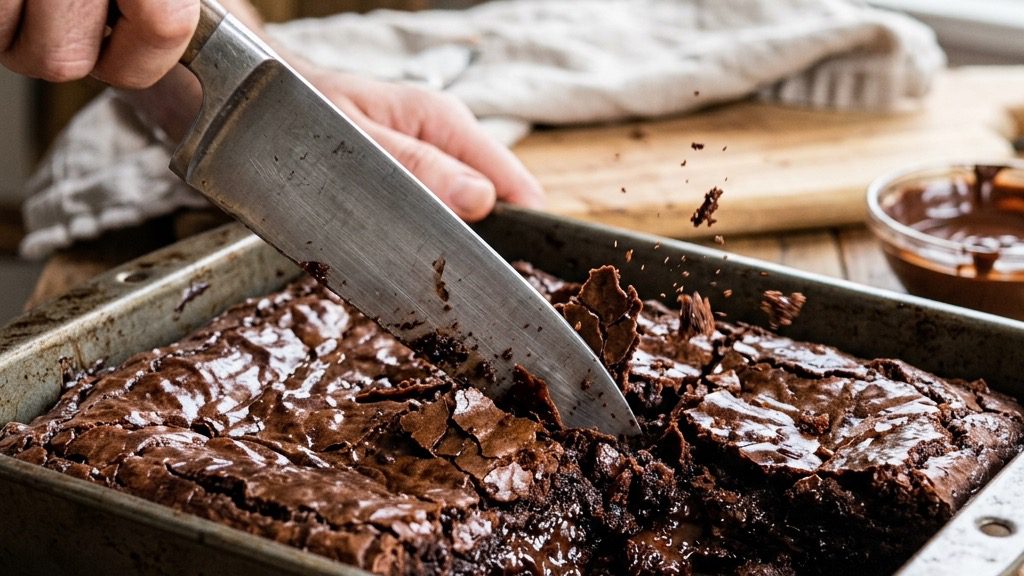 • THE PREPARATION: The hardest part of this recipe is the waiting. You must allow the brownies to cool completely in the pan before attempting to lift them out by the parchment sling. If you cut them while hot, the fudgy interior will simply collapse into a delicious mess.