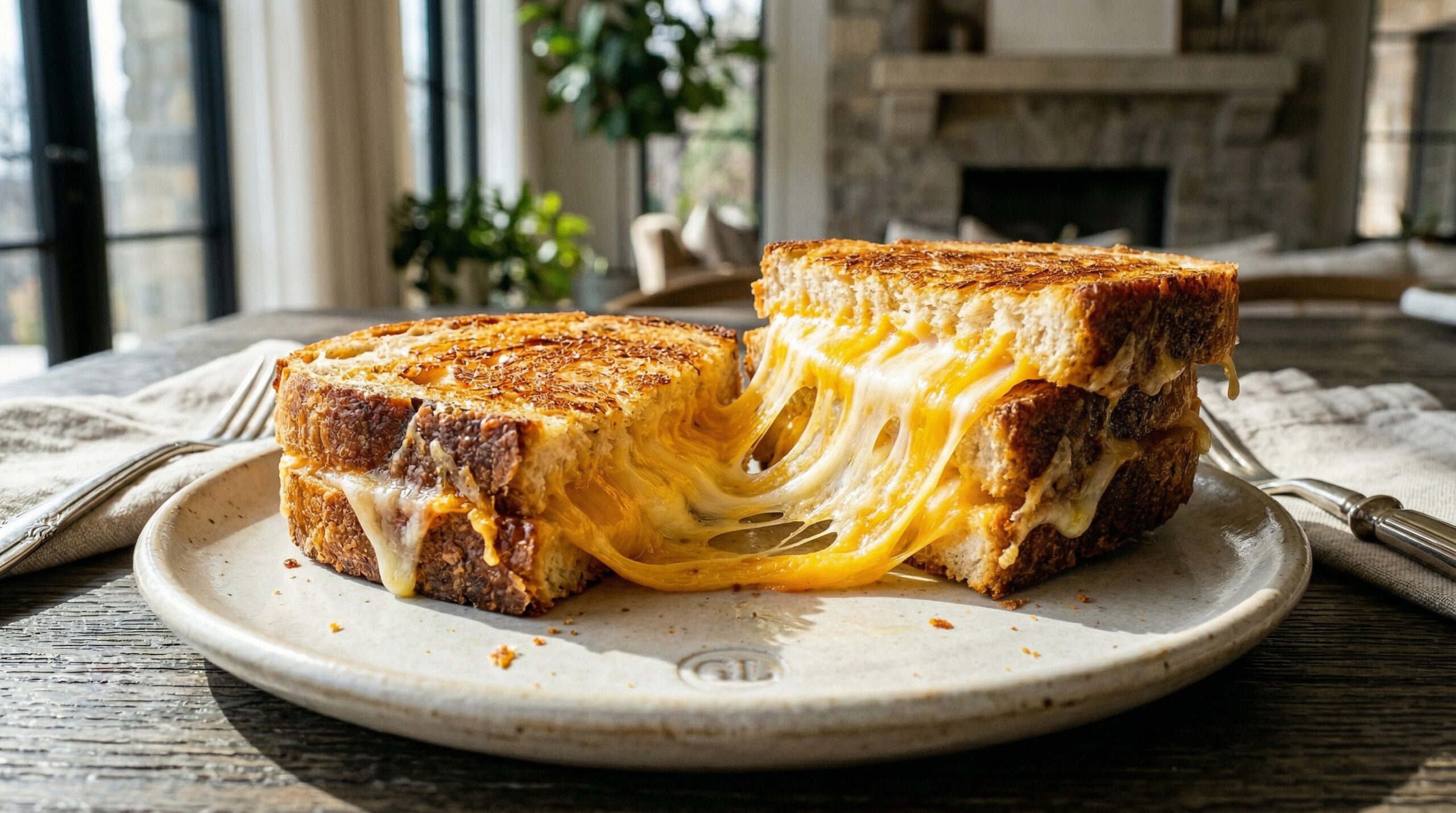 - THE PRESENTATION: Patience is paramount. Slicing the sandwich the absolute second it leaves the pan will cause the molten cheese to hemorrhage completely onto the cutting board. Enforce the strict 3-minute resting phase, then execute a sharp, decisive diagonal cut. Serve immediately on warmed Gracious Linen ceramic plates.