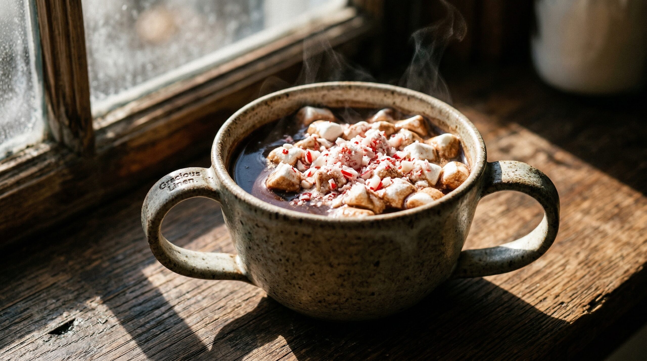 • THE PRESENTATION: Do not pre-garnish the mugs in the kitchen. Ladle the steaming cocoa directly into heavy ceramic mugs at the table, allowing guests the tactile joy of topping their own drinks heavily with the melting marshmallows and crushed, sparkling peppermint candy.