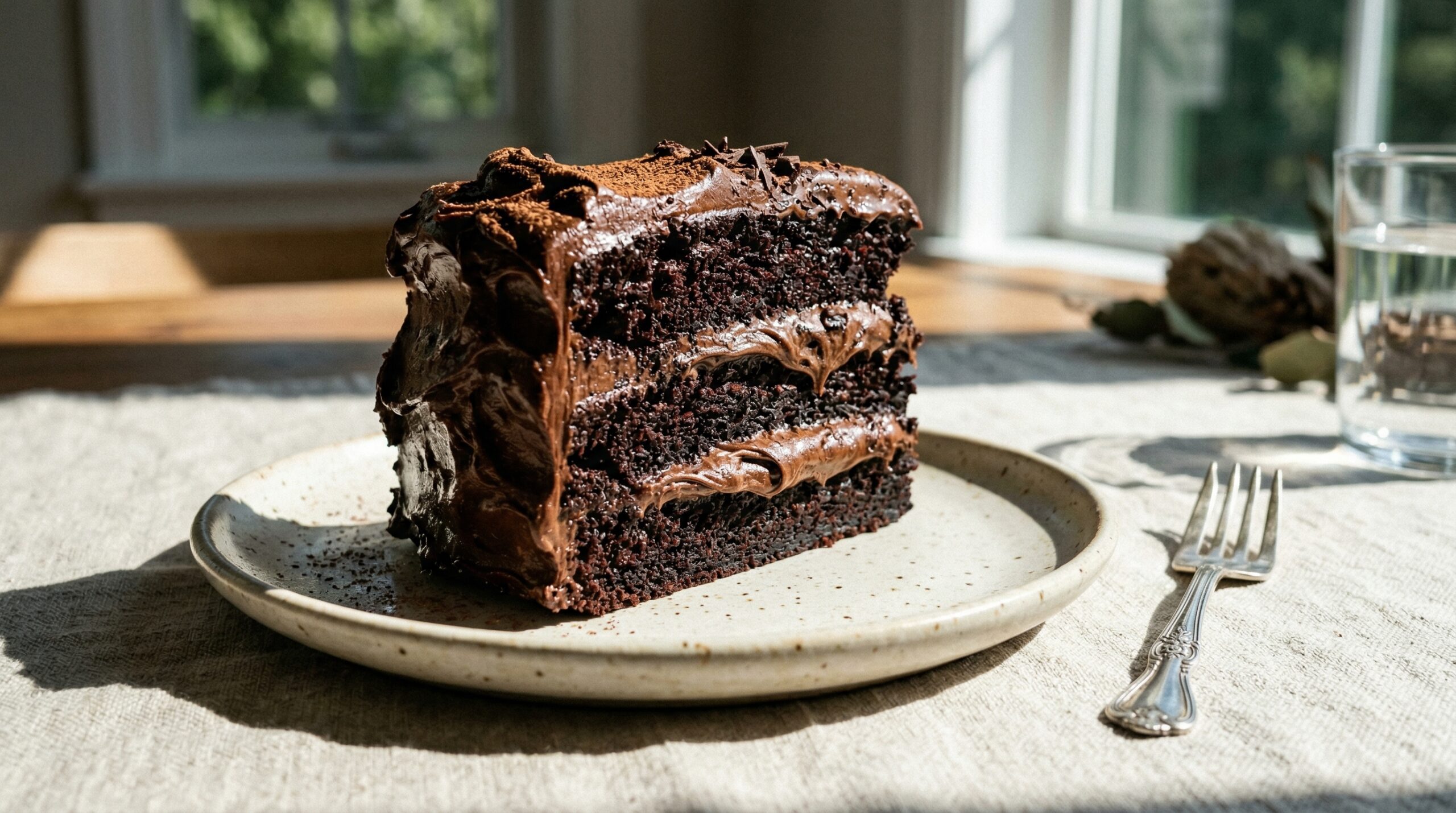 A towering, deeply dark chocolate cake is the ultimate expression of celebratory hospitality. Presenting a massive, heavily frosted centerpiece instantly captures the attention of the room, dismantling the rigid formalities of a dinner party and inviting guests to anchor the evening in pure, nostalgic, and joyful indulgence.