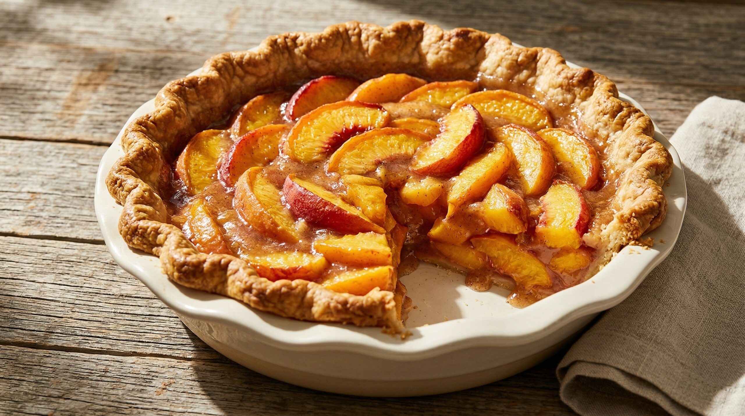 The defining challenge of any summer pie is preventing a soggy bottom crust. Fresh peaches inherently carry a massive volume of cellular water. When tossed in a dry matrix of sugar, flour, and warm spices, the fruit undergoes an osmotic reaction, rapidly weeping its excess juices.